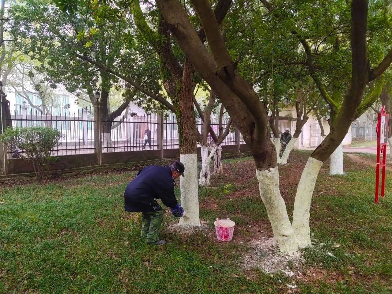 留守管理中心给树木“理发、穿衣”